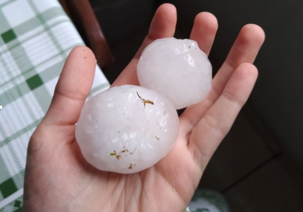 Moradores de Jesuítas registram chuva de granizo com grandes pedras de gelo — Foto: Leticia Algarte
