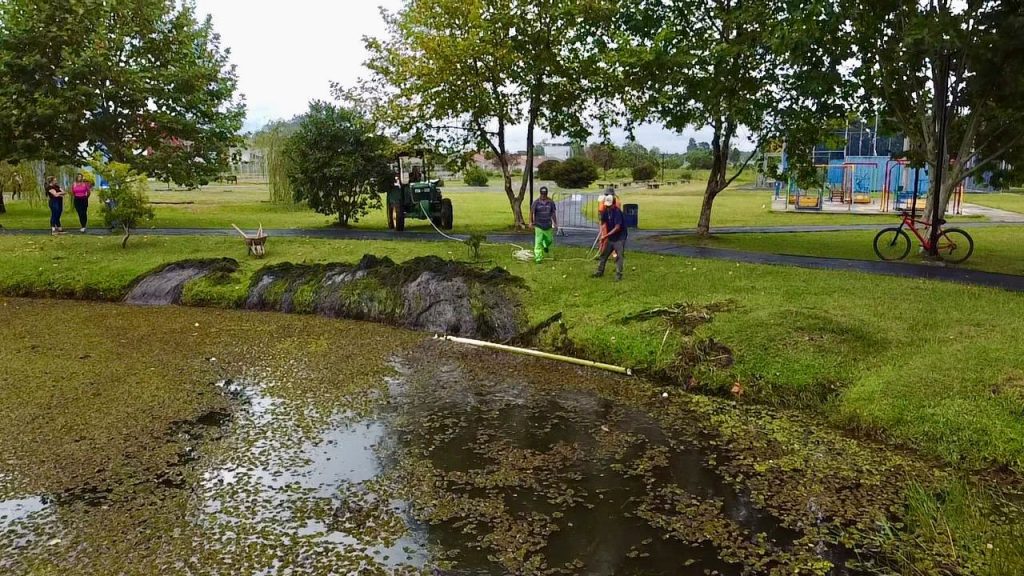 Ação de limpeza e revitalização é realizada no Lago do Ginásio Polacão em São Mateus do Sul