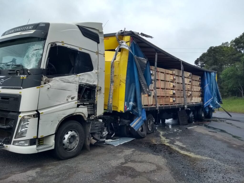 Acidente entre caminhões, na BR 476, fecha rodovia no KM 333
