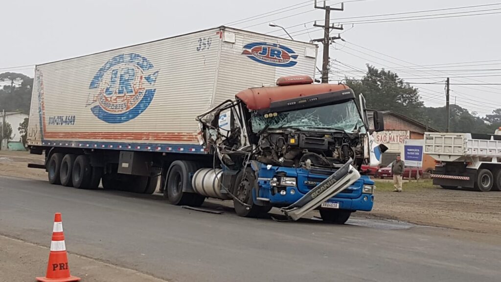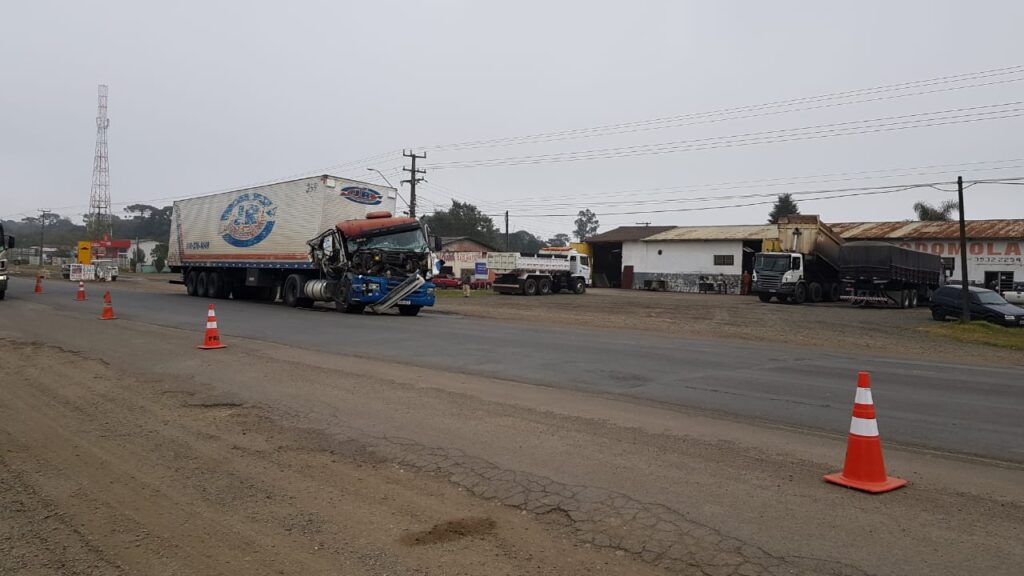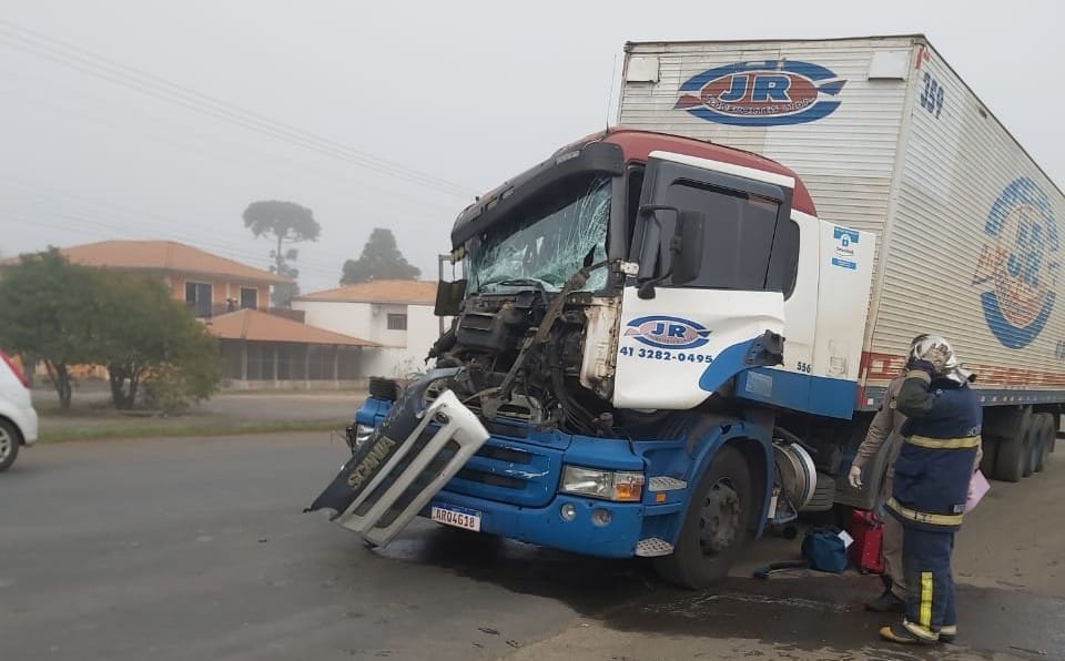 Nessa manhã de sexta-feira (02/07), o Corpo de Bombeiros de São Mateus do Sul foi acionado para atendendo um acidente de trânsito na BR-476, em frente a Cooperativa Bom Jesus, envolvendo um caminhão Scania p340 azul, placa (ARQ4G18), carreta baú. Segundo informações, o caminhão teria batido na traseira de outro caminhão, o impacto foi tamanho que houve dificuldades para a equipe dos bombeiros conseguirem abrir a porta do caminhão. O que agravou a situação foi o vazando de combustível na via. Felizmente a equipe dos bombeiros conseguiu retirar o motorista que foi encaminhado ao Pronto Atendimento (PA).Fotos enviadas por ouvintes da Cultura Sul FM.