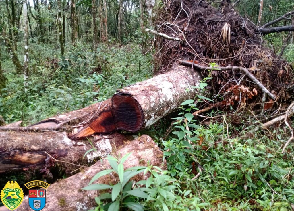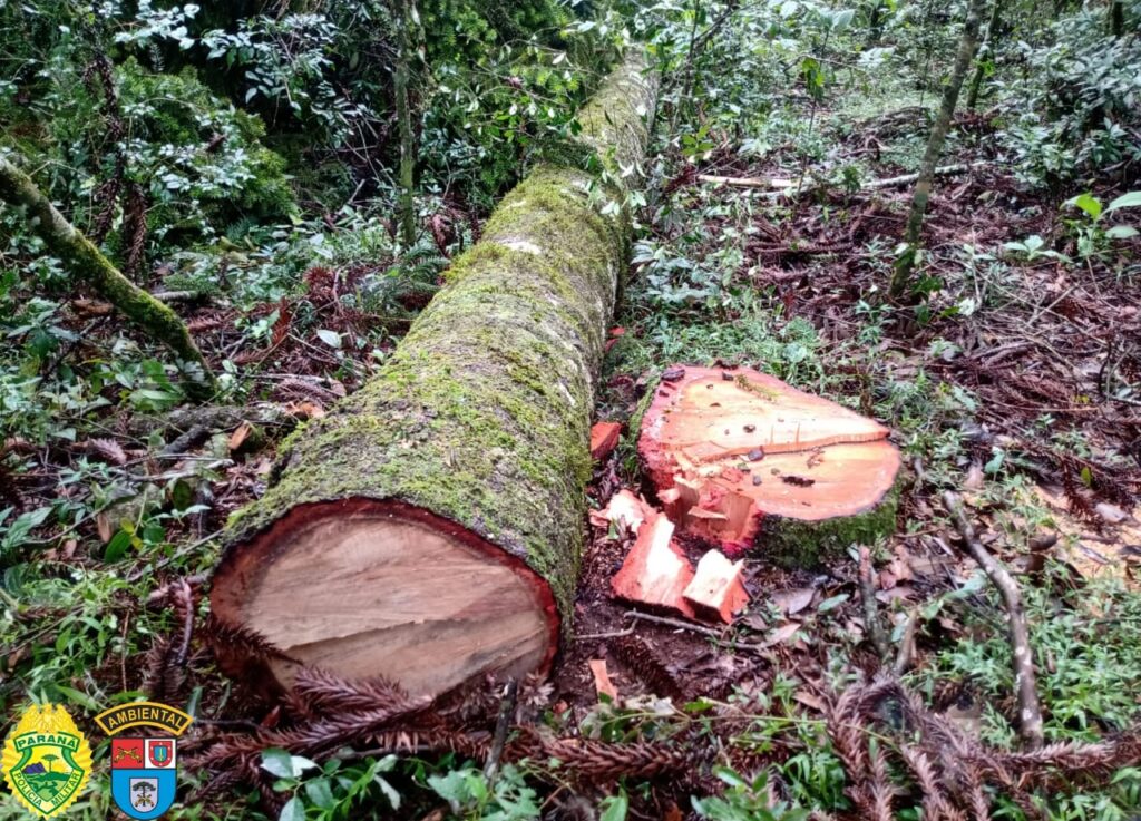 A Polícia Ambiental, informou que através de uma denúncia, foi averiguado um grave crime ambiental em Prudentópolis-PR na quarta-feira (21). Na área de Tijuco Preto, especificamente no Povoado Linha Patos Velhos, uma propriedade rural foi o epicentro de uma ação alarmante de destruição ambiental. Os agentes de fiscalização constataram o corte indiscriminado de 115 Pinheiros Araucária, 04 Imbuia e 01 Cedro, todas elas espécies enfrentando um sério risco de extinção.