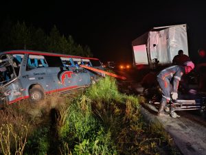 Uma colisão entre um caminhão e um ônibus deixou duas mortes e 34 feridos na noite de domingo (5), na PR-151, Km 468, na localidade de São Miguel da Roseira, trecho que liga São Mateus do Sul (PR) a Três Barras (SC). O acidente ocorreu por volta das 21h20 e mobilizou uma grande operação de resgate envolvendo o Corpo de Bombeiros, SAMU, Polícia Rodoviária Estadual (PRE), Polícia Civil e IML.