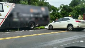 Um grave acidente foi registrado na tarde deste domingo (26) na BR-277, em Palmeira, nos Campos Gerais do Paraná. A colisão envolveu um automóvel Toyota Corolla, pertencente à Prefeitura de Medianeira, e um ônibus de turismo. Duas pessoas morreram e uma terceira ficou gravemente ferida.