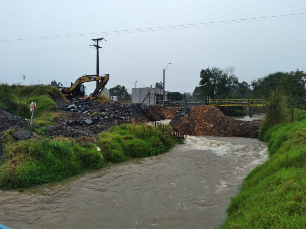 ” Nunca tivemos problemas antes, e devido às fortes chuvas, ficamos presos por essa situação. Já entramos em contato com as autoridades, mas até o momento, não obtivemos respostas. Para evitar que as águas continuassem a subir, meu esposo foi com uma enxada enfrentando a chuva e abriu um canal improvisado”, relatou a empresária Franciele Grittem Valente.