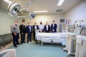 Nesta quarta-feira (14/04), o Governador Carlos Massa Ratinho Junior, e comitiva, estiveram na Lapa para a entrega oficial de seis leitos de Unidade de Terapia Intensiva (UTI), para tratamento de pacientes com a Covid-19. Em funcionamento no Hospital Regional da Lapa de São Sebastião, o serviço integra o Complexo Hospitalar do Trabalhador (CHT) e deve atender ao menos outros dez municípios da região.