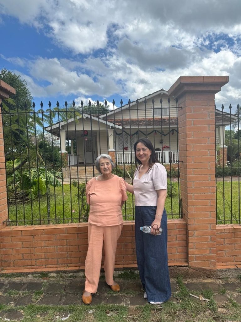 Maria Luiza retornou a São Mateus do Sul acompanhada da família para participar do encontro com o Senador Sergio Moro no último sábado (13) e teve a oportunidade de rever a casa onde viveu até os 17 anos. O momento mais simbólico foi o registro dela sentada no jardim da antiga residência, ao lado da irmã Elza Maria, revivendo lembranças da própria infância. Segundo Rosangela, trata-se de “um daqueles momentos que a gente guarda para sempre”, destacando a força das raízes, da memória e da família.