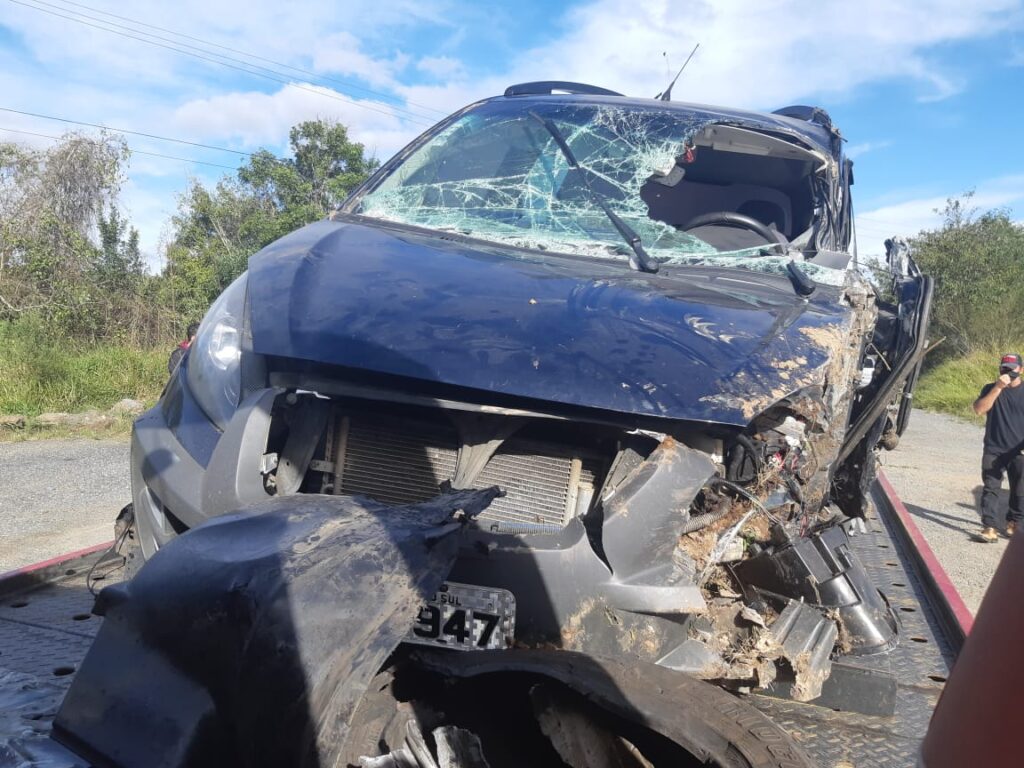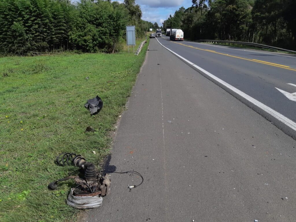 De acordo com informações da Polícia Rodoviária Federal, o veículo seguia sentido São Mateus do Sul, quando tentou ultrapassar o caminhão com placas de Maravilha (SC), veio a colidir frontalmente com a carreta de São Borja (RS), que estava no sentido contrário. Com a força do impacto, bateu contra o caminhão que tentava ultrapassar e na sequência bateu contra o rodado da carreta com placas de Campo Largo, saindo para fora da pista.