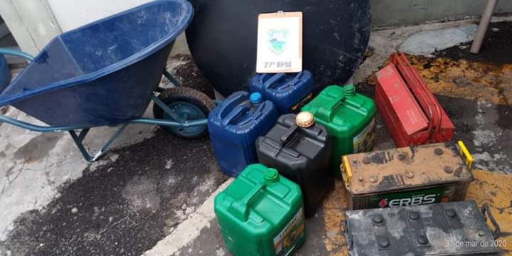 Foram localizados então os objetos produto do furto no porão. O óleo diesel já estava na caçamba de uma camionete dividido em cinco galões, pertencentes ao proprietário da borracharia (que tentou esconder-se numa frutaria próxima, porém foi capturado pelas equipes.