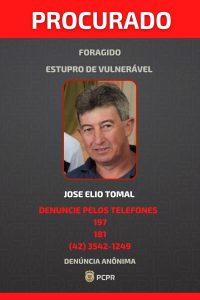 DENÚNCIAS – A PCPR solicita informações que levem à localização do foragido. Denúncias podem ser repassadas de forma anônima pelos telefones 197 da PCPR, 181 do Disque-Denúncia ou (42) 3542-1249 diretamente à equipe de investigação.
