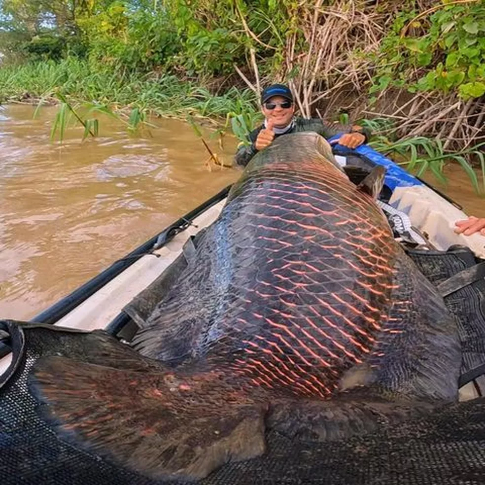 Pescadores fisgam pirarucu de mais 2 metros e 100 kg no Rio Madeira em RO: ‘foi uma sensação incrível