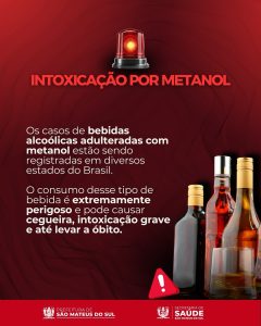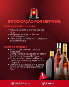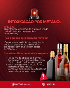 A Secretaria de Saúde de São Mateus do Sul emitiu um alerta à população sobre o risco de intoxicação por metanol, substância altamente tóxica que tem sido encontrada em bebidas alcoólicas adulteradas em diversos estados do Brasil.